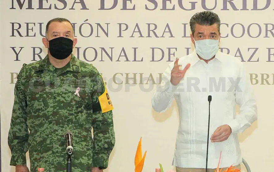 Estuvieron presentes: el secretario técnico de la Mesa de Coordinación Estatal para la Construcción de la Paz y Seguridad en Chiapas, José Francisco Trujillo Ochoa; la secretaria de Seguridad y Protección Ciudadana, Gabriela Zepeda Soto; el fiscal general del Estado, Olaf Gómez Hernández; el secretario de Protección Civil, Luis Manuel García Moreno; en representación de la Secretaría General de Gobierno, Jorge Cruz Pineda; el presidente de la Comisión Estatal de los Derechos Humanos, Juan José Zepeda Bermúdez; el magistrado presidente del Poder Judicial, Juan Óscar Trinidad Palacios; y el delegado federal de Programas Integrales de Desarrollo en Chiapas, José Antonio Aguilar Castillejos.