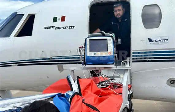 El Gobierno de Chiapas, a través de la Secretaría de Protección Civil (PC), realiza de manera segura el traslado aeromédico de un paciente de dos años de edad que sufrió quemaduras de segundo grado, a un hospital en Galveston, Texas, Estados Unidos.