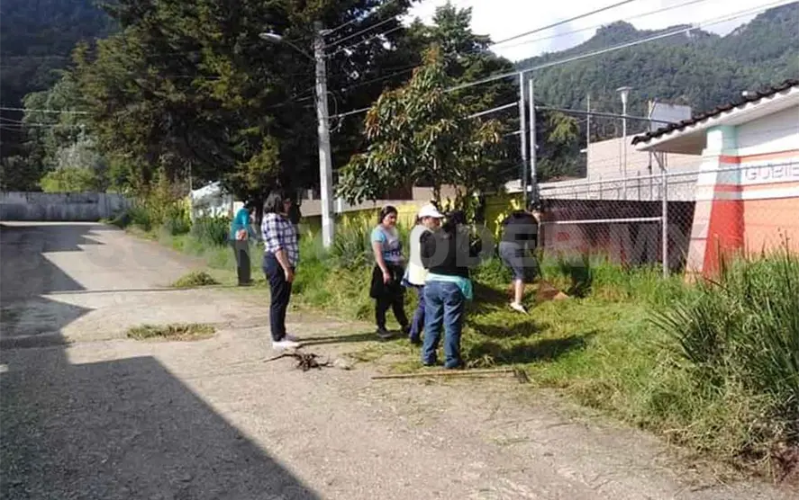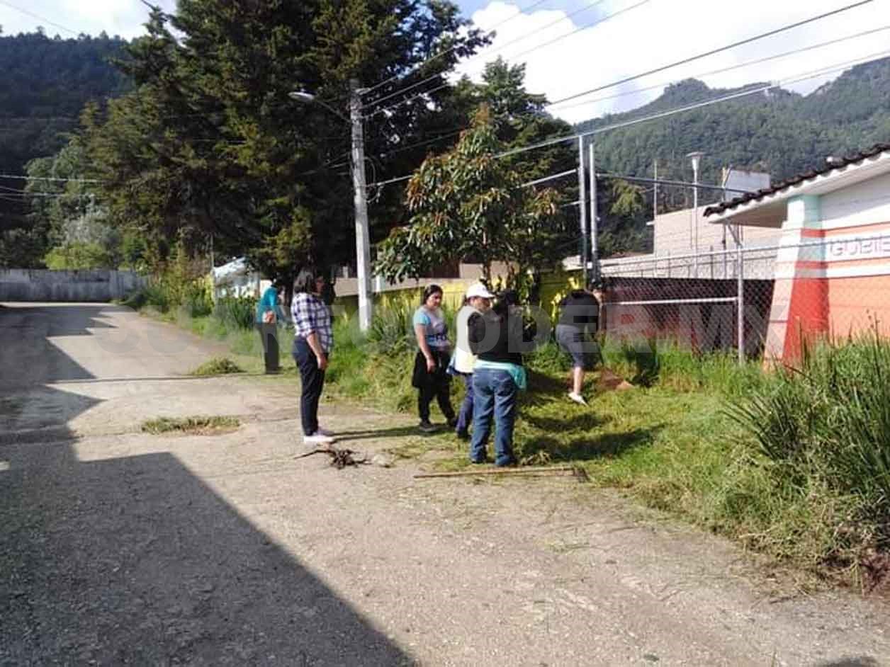 Habitantes de la colonia Maya, en el sur de San Cristóbal de Las Casas, realizaron este domingo la limpieza de sus áreas verdes, calles y drenes, además dieron mantenimiento a los pozos de infiltración, informó Martín López, una de las personas que participó en las actividades.