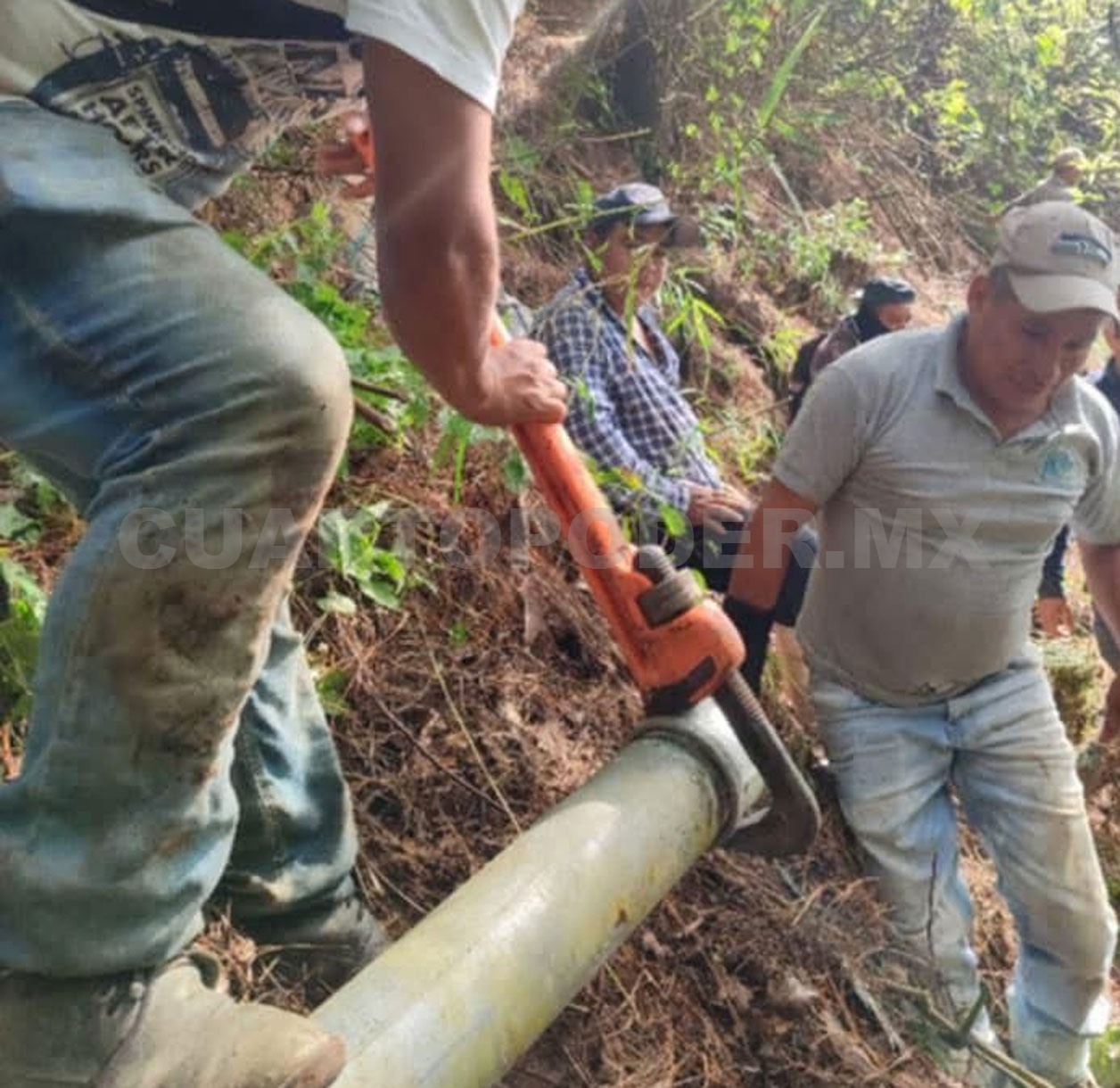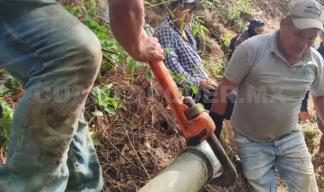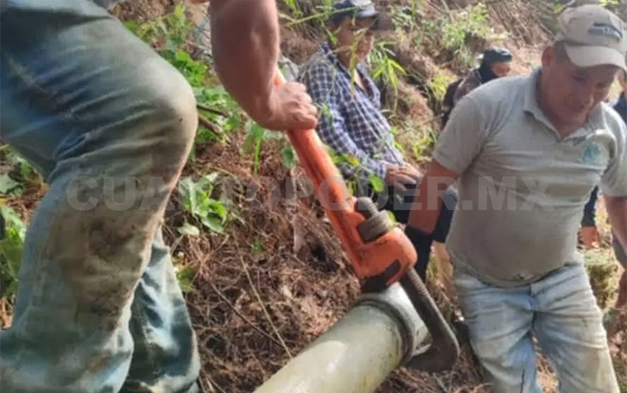 En el municipio Monte Cristo de Guerrero, habitantes organizados de barrios como Juan Diego y Getsemaní realizaron un trabajo colectivo para arreglar tuberías fracturadas de agua potable en zonas elevadas de montañas.