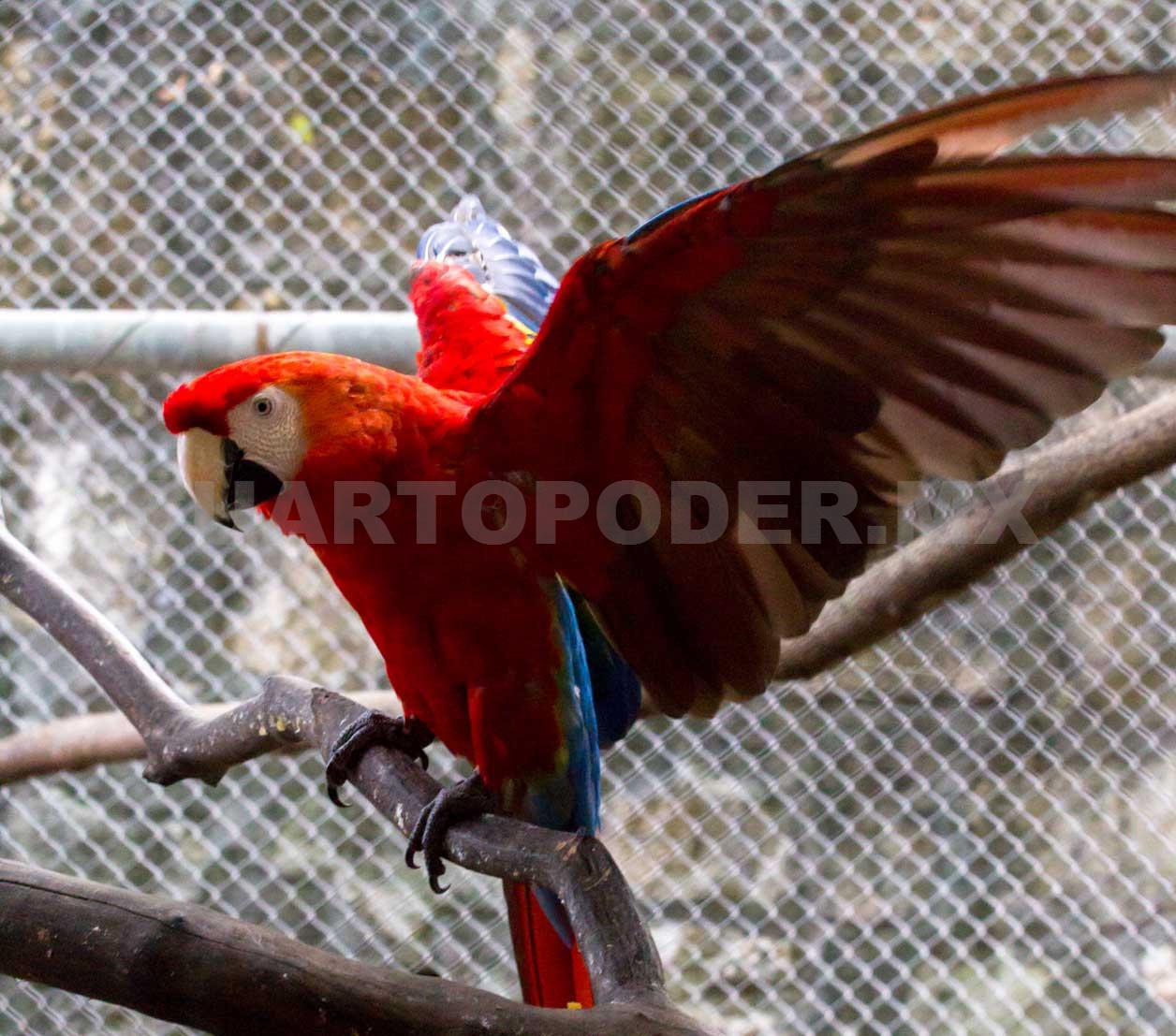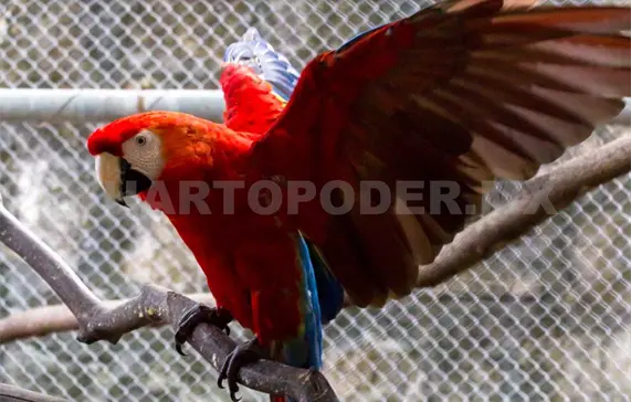 La guacamaya roja, como la otras especies mencionadas, se encuentran en peligro debido a que también se ha reducido su territorio.