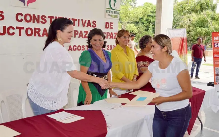 En este sentido, la presidenta municipal de Cárdenas, María Esther Zapata Zapata, dio la bienvenida a María Mandiola y al equipo de la Seigen a Tabasco, “aquí, hoy, se formaron grupos de Mujeres Constructoras de Paz. Las mujeres tenemos que empujarnos y salir adelante, ir de la mano, caminar hacia un mejor futuro, hacia la esperanza. Esta es la oportunidad de todas y todos, por el progreso y bienestar”.