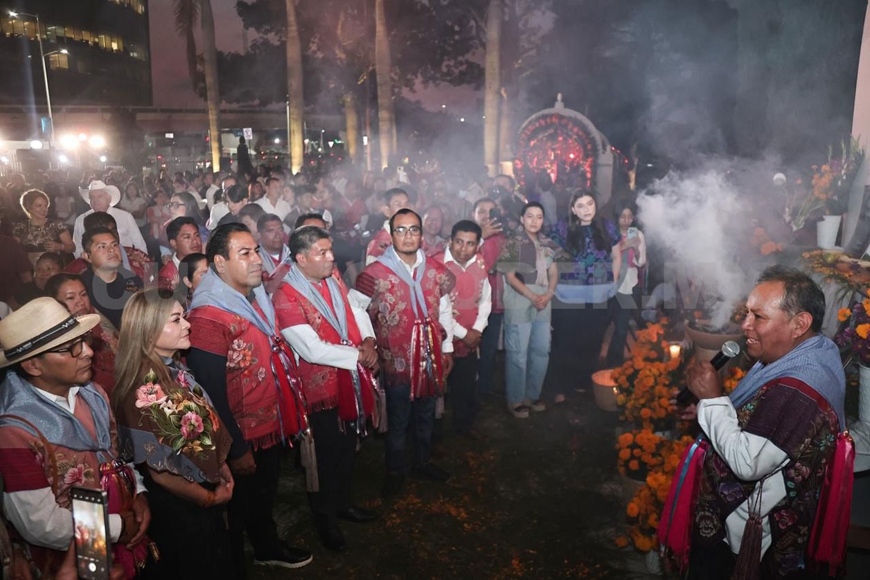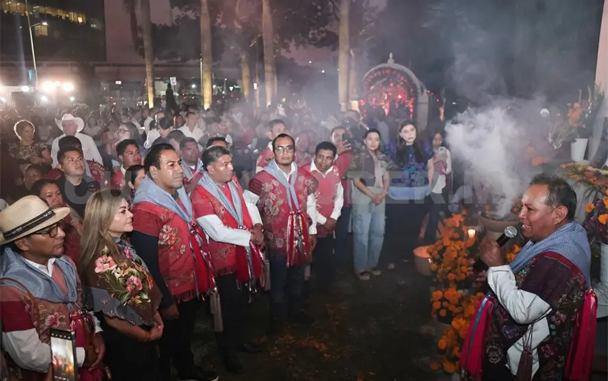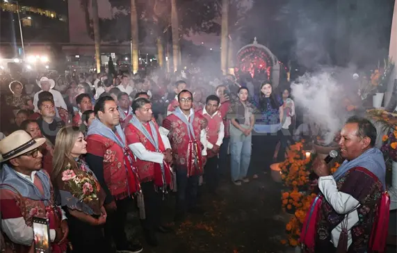Destacó que el altar, adornado con juncia, flores, alimentos y bebidas para los difuntos, representa un símbolo vivo de la identidad y espiritualidad de las y los chiapanecos, reafirmando la importancia de transmitir estas costumbres a las nuevas generaciones. “Cada flor, cada vela y cada ofrenda colocada en este altar nos recuerda la grandeza de nuestras tradiciones y el respeto hacia quienes nos antecedieron”, expresó.