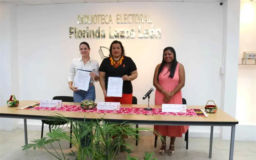 Con ese motivo se llevó a cabo la firma de un convenio específico de colaboración institucional, en el que el IEPC estuvo representado por María Magdalena Vila Domínguez en su carácter de consejera presidenta provisional, y por el doctor Manuel Jiménez Dorantes, secretario ejecutivo; así como por la titular de la Secretaría de Igualdad de Género, María Mandiola Totoricaguena.