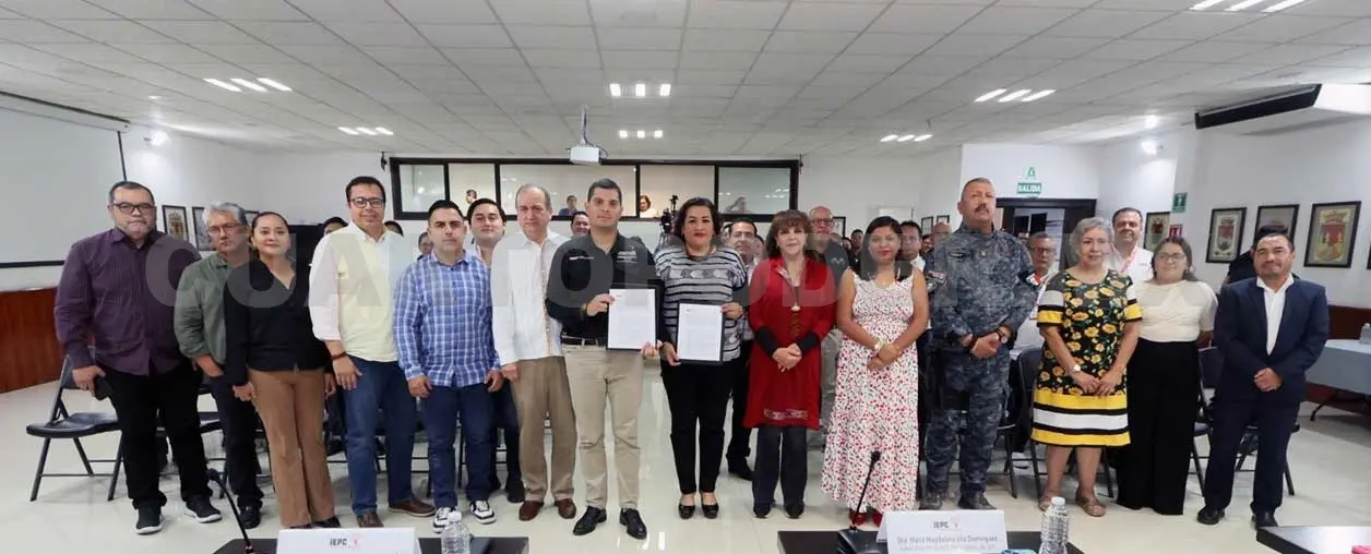 Ante la presencia de la secretaria General de Gobierno y Mediación, Patricia Conde Ruiz, firmaron el documento la consejera presidenta provisional del IEPC, María Magdalena Vila Domínguez y el titular de la SSP, Óscar Alberto Aparicio Avendaño; estuvieron presentes también la consejera electoral Gloria Esther Mendoza Ledesma y el secretario ejecutivo del órgano electoral, Guillermo Arturo Rojo Martínez.