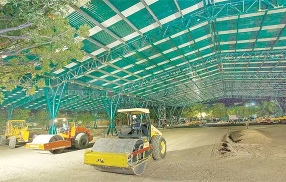 Por otra parte, considerando las condiciones del clima que prevalecen en la capital la mayor parte del año y a fin de ofrecer espacios óptimos para que las y los tuxtlecos puedan ejercitarse en Caña Hueca, uno de los sitios más emblemáticos de la ciudad, avanza la instalación del techado en las canchas de basquetbol, voleibol y futbol rápido.
