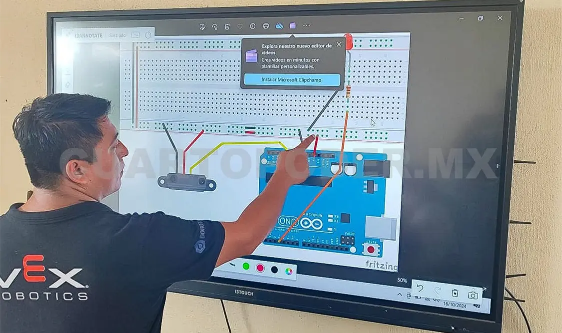 El Colegio de Estudios Científicos y Tecnológicos del Estado de Chiapas (CECyTE Chiapas), a través de la Unidad de Informática y docentes del Plantel 40 Las Águilas, impartieron el curso de Robótica VEX y Arduino, dirigido para las y los estudiantes del Centro educativo número 47 Estación Huehuetán, con el objetivo de fortalecer las habilidades técnicas, así como prepararlos para participar en futuros eventos de robótica.
