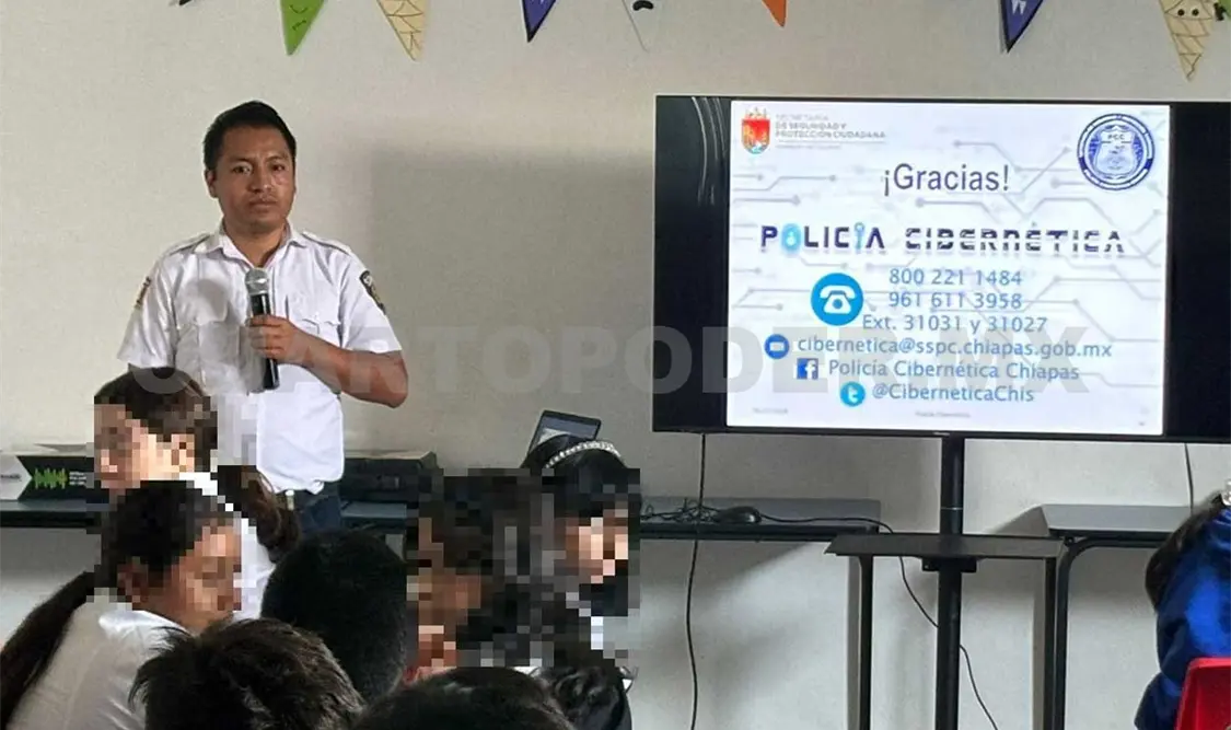 Personal de la Secretaría de Seguridad y Protección Ciudadana (SSyPC) adscrito a la Policía Cibernética, impartió pláticas en materia de prevención de delitos cibernéticos, ciberacoso, cyberbullying y ciberseguridad a estudiantes del Centro Educativo “Rufino Tamayo”, en Tuxtla Gutiérrez.