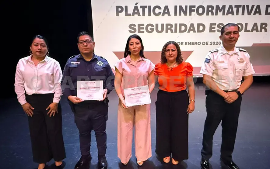 Las Secretarías de Educación y Cultura y Seguridad Pública y Protección Ciudadana Municipal, realizaron la Plática Informativa de Seguridad Escolar, dirigida a directivos y docentes de los niveles básico, medio superior y superior, en el Teatro de la Ciudad Amparo Montes, como parte de la estrategia de acercamiento y diálogo con la población, impulsada por el presidente municipal de Tapachula, Yamil Melgar Bravo.
