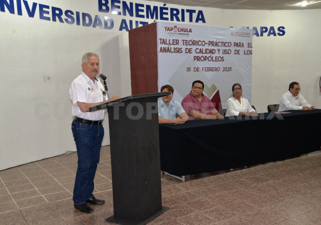Se llevó a cabo el taller teórico-práctico “Para el análisis de calidad y uso de los propóleos”, organizado por la Benemérita Universidad Autónoma de Chiapas (Unach) y el Gobierno Municipal de Tapachula a través de la Secretaría de Desarrollo Rural y Fomento de Agronegocios, dirigido a apicultores, técnicos, docentes, estudiantes y público en general.