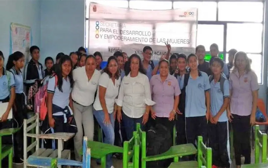 La Secretaría para el Desarrollo y Empoderamiento de las Mujeres (Sedem), a través de la Delegación Regional XII Selva Lacandona, lleva a cabo taller con el tema Tipos de Violencia, dirigido al alumnado y docentes de la Escuela Secundaria Técnica No. 36, en municipio de Altamirano, Chiapas.