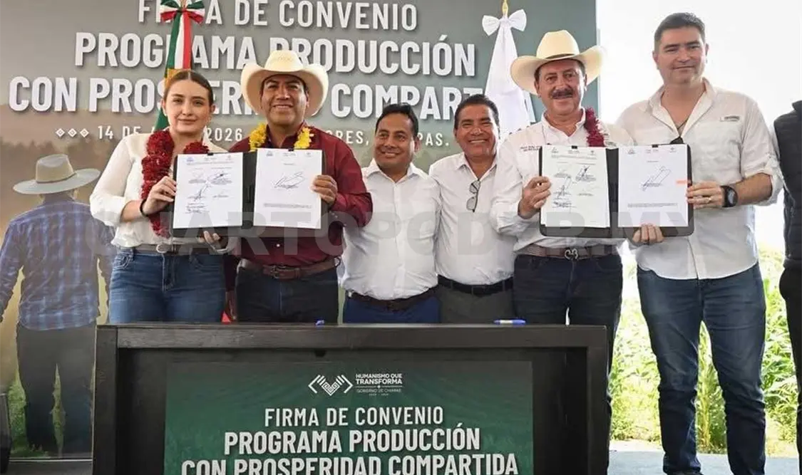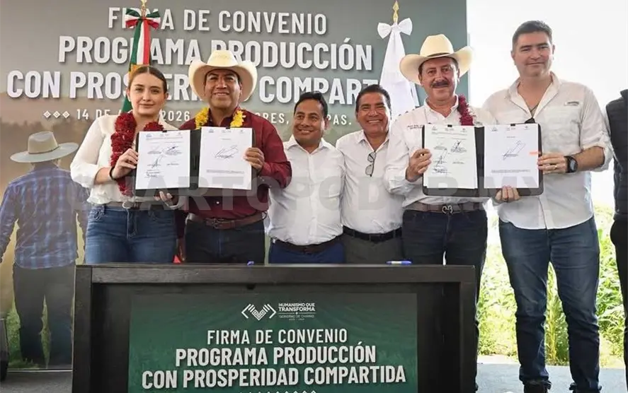 En el municipio de Villaflores, el gobernador Eduardo Ramírez Aguilar firmó el Convenio de Coordinación entre el Gobierno de Chiapas y Acreimex, para la creación de un fondo de garantía líquida destinado al financiamiento de productoras y productores chiapanecos del sector primario, agroalimentario y agroindustrial, como parte del Programa Producción con Prosperidad Compartida. En este contexto, subrayó que el gobierno de la Nueva ERA impulsa políticas orientadas a detonar la productividad y el desarrollo rural en todo el estado.