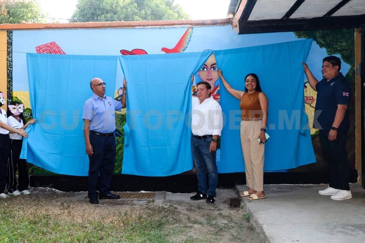 En unidad con la comunidad escolar del Colegio Miguel Hidalgo (CMH), el Ayuntamiento de Tapachula, a través de la Secretaría de Desarrollo Urbano y Ecología (Sedurbe), realizó la develación del mural y acciones de reforestación del proyecto ambiental Huellitas Verdes, una iniciativa que busca fortalecer la conciencia ecológica entre las nuevas generaciones.