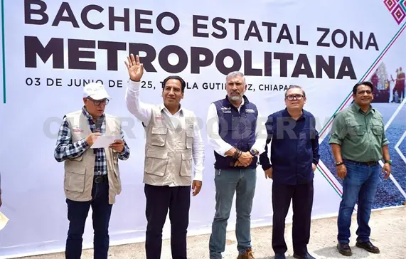 Desde la capital chiapaneca, el gobernador Eduardo Ramírez Aguilar dio el banderazo de inicio al programa de Bacheo Estatal en la zona Metropolitana, mediante el cual se rehabilitarán más de 145 kilómetros de vías urbanas y rurales en diversos municipios.