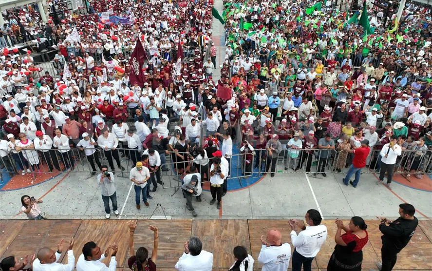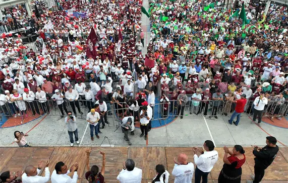 “México es territorio ‘claudista’, todo el territorio de la República mexicana estamos con Claudia Sheinbaum. Nosotros en la Cuarta Transformación somos gente de principios, personas con valores y el gran valor que tiene nuestra candidata y que es políticamente indestructible: es una mujer honesta, trabajadora, valiente y sigue el ejemplo de nuestro máximo referente, López Obrador”, comentó.