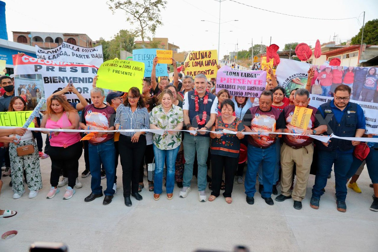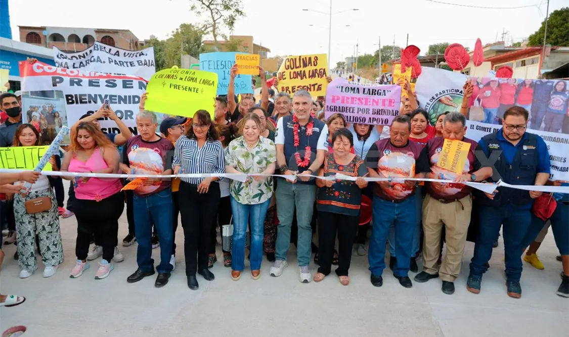El presidente Ángel Torres Culebro, junto a su esposa Mercedes Ortiz y a vecinas y vecinos, inauguró cerca de un kilómetro de pavimentación con concreto hidráulico del bulevar Júpiter, en la colonia Satélite Loma Larga, con lo que llega la justicia social después de muchos años de espera.
