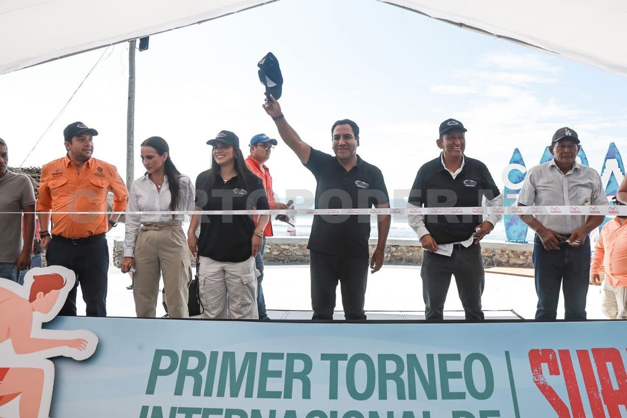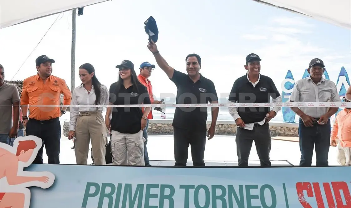 El gobernador Eduardo Ramírez Aguilar inauguró el Primer Torneo Internacional de Surf 2025 en la playa El Zapotal, en el municipio de Pijijiapan, competencia que reúne a atletas de México, Costa Rica, Panamá, Argentina, Estados Unidos, Israel y Sudáfrica, y que contempla una bolsa de dos millones de pesos en premios para las y los ganadores.