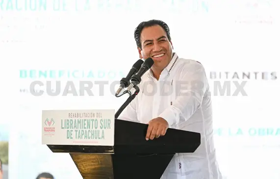 El gobernador Eduardo Ramírez Aguilar inauguró los trabajos de rehabilitación del libramiento Sur de Tapachula, obra que representó una inversión superior a 74.5 millones pesos y beneficia de manera directa a mas de 421 mil habitantes. Destacó que esta acción forma parte del proyecto de modernización de dos mil kilómetros de carreteras estatales que impulsa el gobierno de la Nueva ERA, con el objetivo de fortalecer la conectividad y dinamizar las actividades sociales, comerciales y turísticas en las distintas regiones de Chiapas.