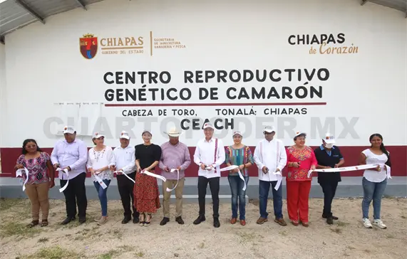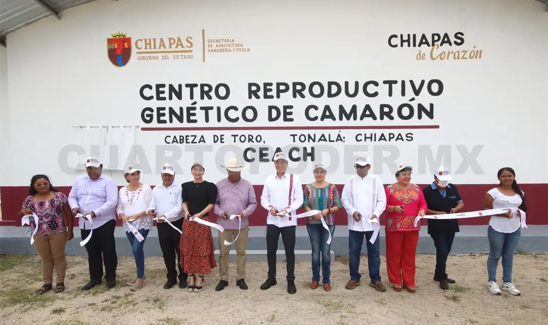 En Tonalá, el gobernador Rutilio Escandón Cadenas inauguró el Centro Reproductivo Genético de Camarón. Ahí señaló que este espacio beneficia a productores de este municipio así como de Pijijapan, Arriaga, Mapastepec y Acapetahua e impulsará la comercialización de este crustáceo.