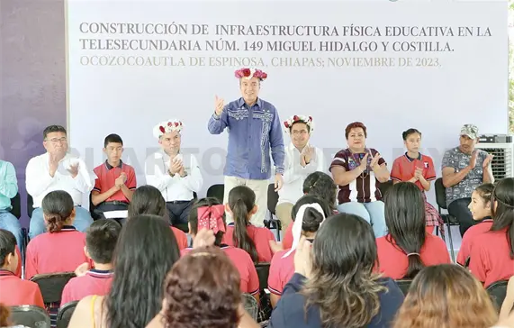 Al inaugurar la construcción de infraestructura física educativa en la Escuela Telesecundaria núm. 149 “Miguel Hidalgo y Costilla”, de la localidad Espinal de Morelos en el municipio de Ocozocoautla de Espinosa, el gobernador Rutilio Escandón Cadenas destacó que en Chiapas se impulsan obras prioritarias en este rubro, con el objetivo de garantizar la cobertura educativa a niñas, niños y jóvenes, a través de espacios seguros y de calidad.