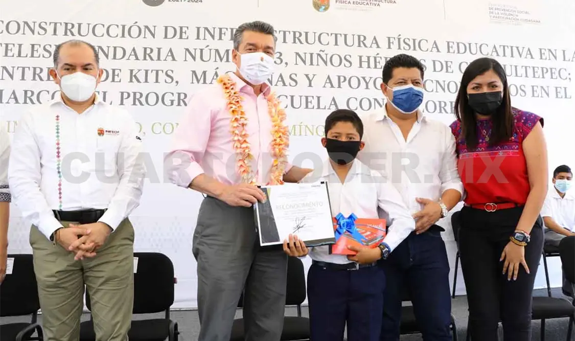 A su vez, la directora del plantel, Liliana Vianey Aguilar García, reconoció al mandatario estatal por no dejar la educación al azar, e impulsar la búsqueda de un Chiapas en el que todas y todos tengan acceso a mayores oportunidades y a espacios dignos, demostrando así su compromiso de fomentar programas que contribuyen a tener mejor infraestructura, una educación de calidad y, por ende, mejores estudiantes y profesionistas.