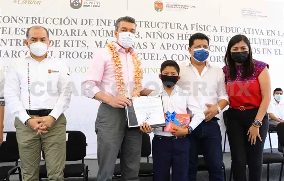 En el municipio de Comitán de Domínguez, el gobernador Rutilio Escandón inauguró obras de infraestructura escolar en la Escuela Telesecundaria 1463 “Niños Héroes de Chapultepec”, del ejido Primero de Mayo, donde sostuvo que su gobierno seguirá invirtiendo en materia educativa, pues la educación constituye la base para fortalecer el bienestar y el progreso, así como el crecimiento del índice de desarrollo humano de los pueblos y las comunidades de Chiapas.