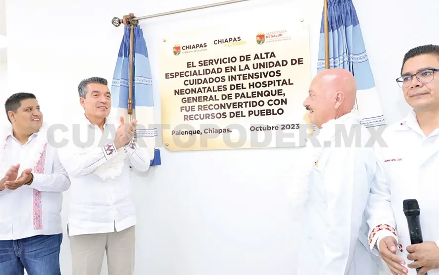 En la inauguración de la Unidad de Cuidados Intensivos del Hospital General de Palenque, el gobernador Rutilio Escandón Cadenas sostuvo que el gobierno de la Cuarta Transformación invierte los recursos públicos en acciones prioritarias en materia de salud, siendo una muestra de ello la reconversión y el equipamiento de este espacio médico de alta especialidad que fortalecerá integralmente la atención, el cuidado y la recuperación de pacientes con problemas de salud potencialmente graves.