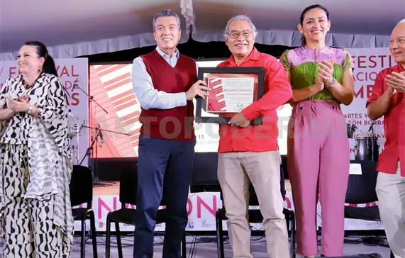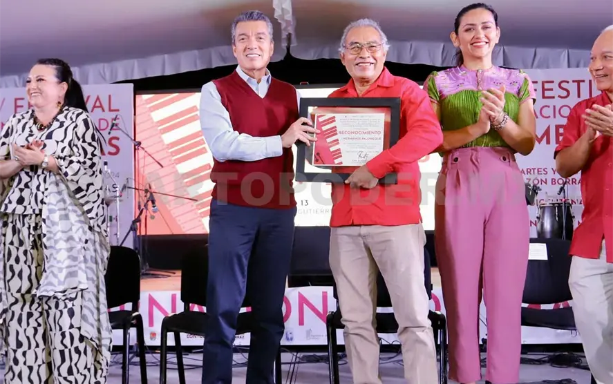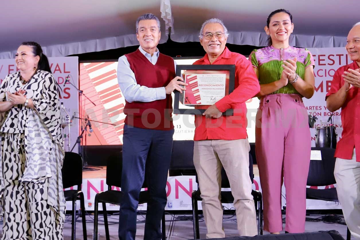 En nombre de Roberto Palomeque, fundador de la marimba Hermanos Palomeque, quien no asistió por cuestiones de salud, su hijo, Javier Palomeque, agradeció esta distinción y resaltó el compromiso que tienen al ser una familia que toda su vida se ha dedicado a la marimba: “Soy la tercera generación y ya está la cuarta, que son mis hijos. Gracias, gobernador, por darle la importancia a la marimba que nos identifica como chiapanecos”.