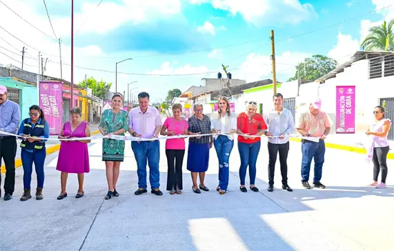 Al inaugurar la pavimentación integral de calles en la 20.ª calle Oriente, entre 13.ª avenida Sur y 19.ª avenida Sur, de la colonia Calcáneo Beltrán, en Tapachula, la presidenta municipal Rosa Irene Urbina Castañeda refrendó el compromiso de los gobiernos de la Cuarta Transformación de seguir avanzando con la entrega de obras que beneficien a las familias tapachultecas.