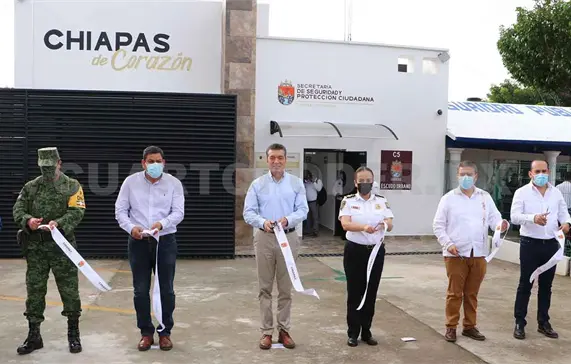 El gobernador Rutilio Escandón Cadenas inauguró el Centro de Coordinación, Control, Comando, Comunicación y Cómputo (C5) en el municipio de Reforma, donde señaló que, a pesar de la pandemia de Covid-19, la inversión en esta materia continuará porque el principal objetivo es cuidar a las familias chiapanecas, ya que si hay seguridad se tiene mayor posibilidad de crecer y mejorar las condiciones de vida.