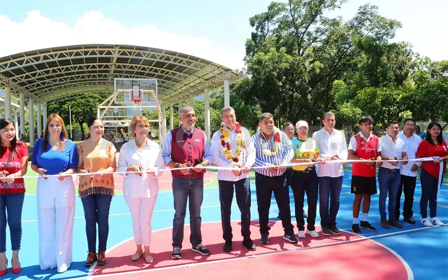 Tras apuntar que el trabajo en equipo hace posible un mayor apoyo a los municipios, el secretario de Obras Públicas (SOP), Ángel Torres Culebro, precisó que en esta Unidad Deportiva se rehabilitó la cancha de usos múltiples, trotapista, plaza de acceso, áreas de recreación y ejercitación, además se instaló graderío metálico y luminarias solares, entre otros. También anunció que se tiene programada la construcción de un parque y otras obras con el Ayuntamiento.