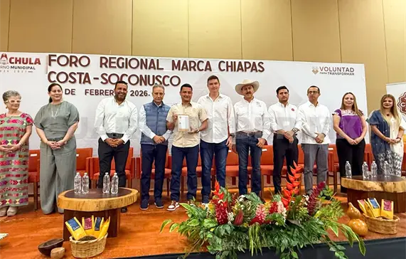 El titular de la Secretaría de Economía y del Trabajo (SEyT), Luis Pedrero González, inauguró el Foro Regional Marca Chiapas Costa–Soconusco junto con el fundador de Marca Chiapas, Rómulo Farrera Escudero, consolidando un espacio que representa la continuidad de un crecimiento más equitativo y sustentable en beneficio del desempeño de las empresas chiapanecas.