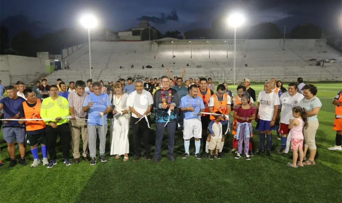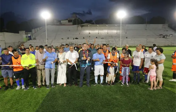 Finalmente, Morales Vázquez felicitó a la Liga Municipal por sus esfuerzos para consolidar la rehabilitación del pasto sintético en el estadio, un espacio que ha sido sede de grandes encuentros futbolísticos y que forma parte importante de la historia deportiva del estado.