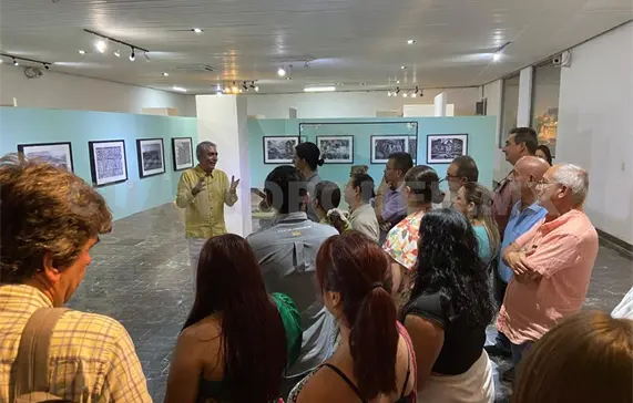 El autor de la exposición habló sobre la inspiración y las vivencias de la naturaleza en la selva; entre anécdotas y recuerdos explicó a los asistentes, manteniendo su atención y admiración por el trabajo realizado.
