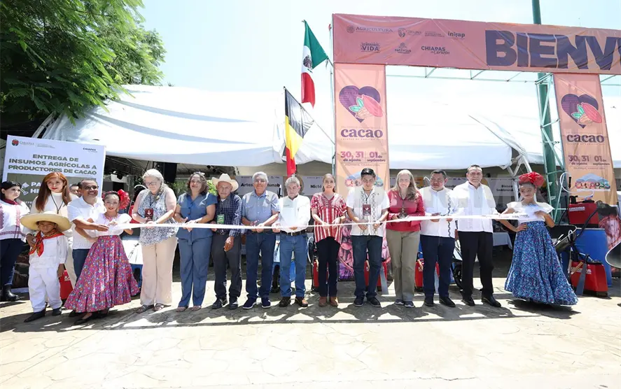 Ahí destacó que esta iniciativa constituye el reconocimiento al trabajo que realizan mujeres y hombres que conforman la cadena productiva del cacao chiapaneco, cultivo que enaltece la producción agrícola del estado ante México y el mundo.