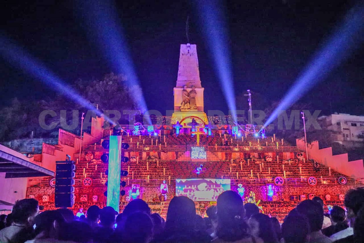 El parque se convirtió en un escenario espectacular que da muestra de una de las celebraciones más representativas de los mexicanos. Las gradas del monumento a la Federación de Chiapas a México, se aprovecharon para instalar el altar más grande del país.