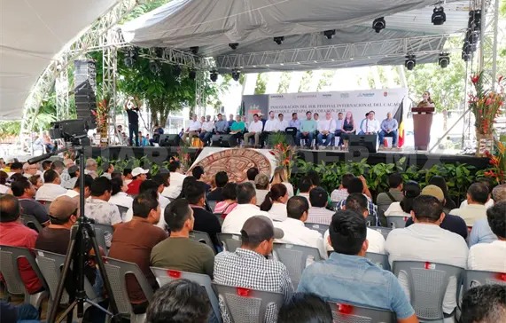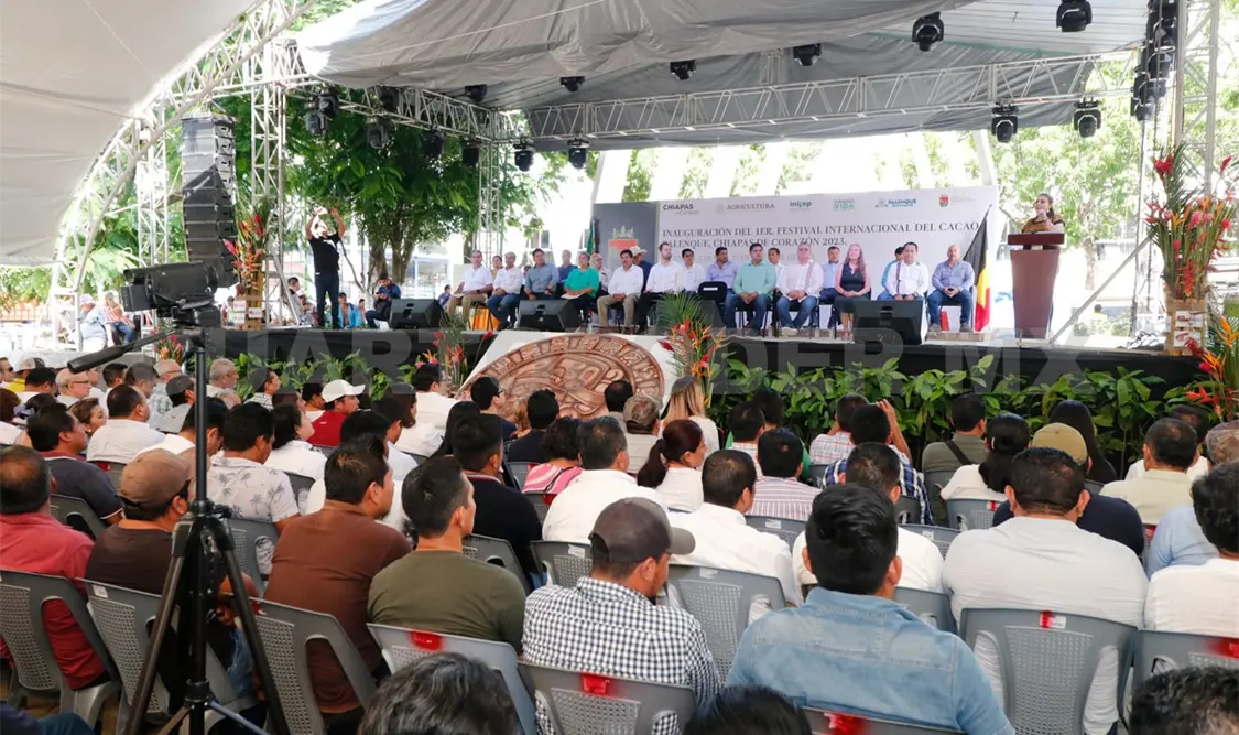 Con un ritual maya y la participación de decenas de familias junto al sector agrícola de las regiones Norte y Selva, la secretaria de Agricultura, Ganadería y Pesca (Sagyp), Zaynia, Andrea Gil Vázquez, representante personal del gobernador Rutilio Escandón Cadenas, inauguró el 1.er Festival Internacional del Cacao Palenque, “Chiapas de Corazón 2023”, con sede en el Parque Central de este Pueblo Mágico.