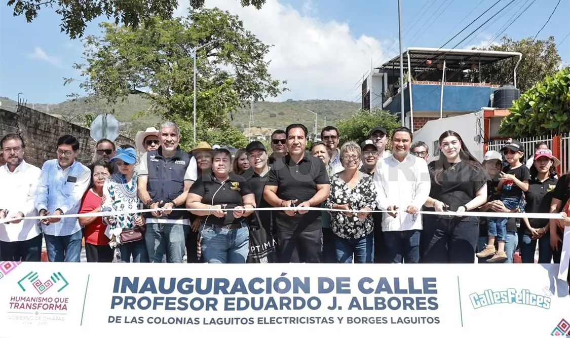 En Tuxtla Gutiérrez, el gobernador Eduardo Ramírez Aguilar y el presidente municipal, Ángel Torres Culebro, realizaron la inauguración de la rehabilitación integral y modernización de la calle Profesor Eduardo J. Albores, una obra que beneficiará a habitantes de las colonias Laguitos Electricistas y Borges Laguitos.