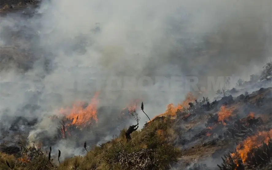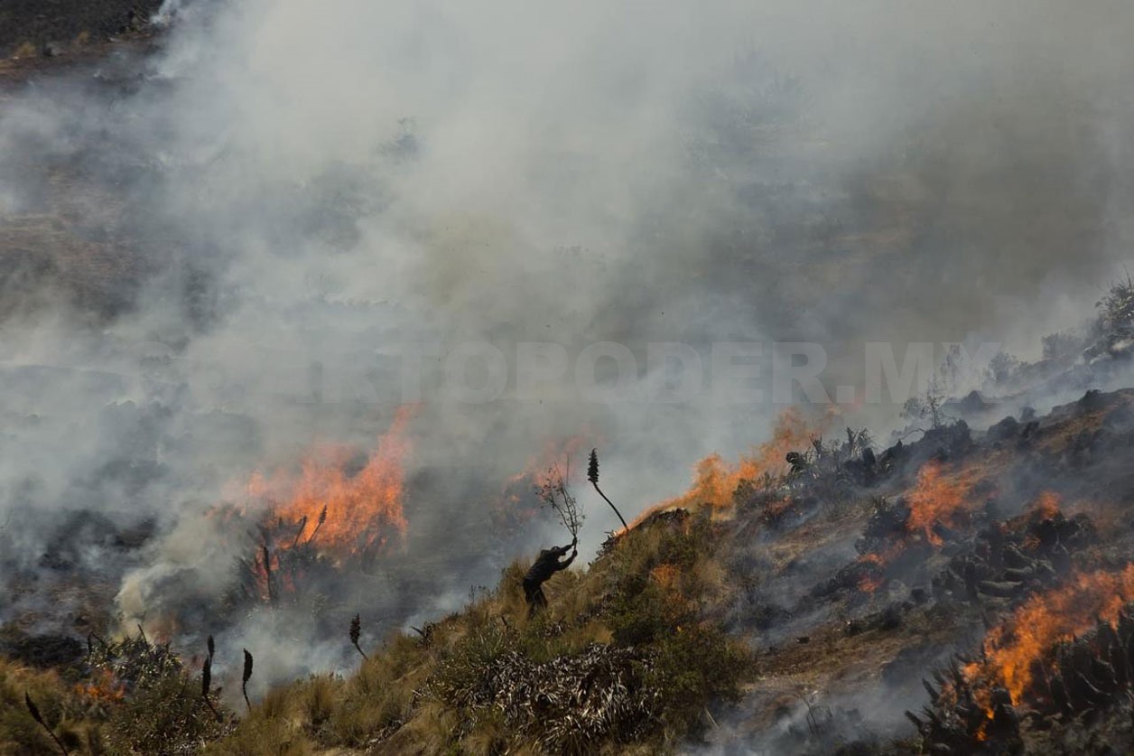 La vegetación que se ha siniestrado es pasto bajo arbolado adulto de bosque de Pino-Encino; para atender la eventualidad se han utilizado 22 personas entre la brigada compensación de la Comisión Nacional Forestal (Conafor) y de la Comisión Nacional de Áreas Naturales Protegidas (Conanp).