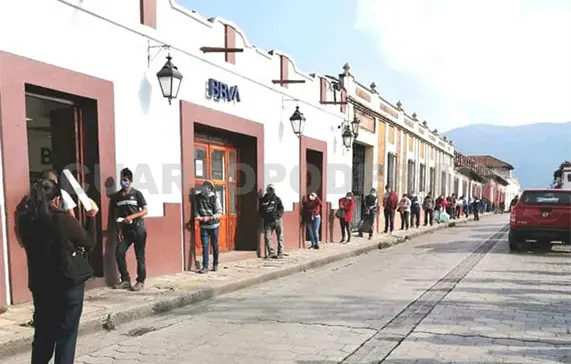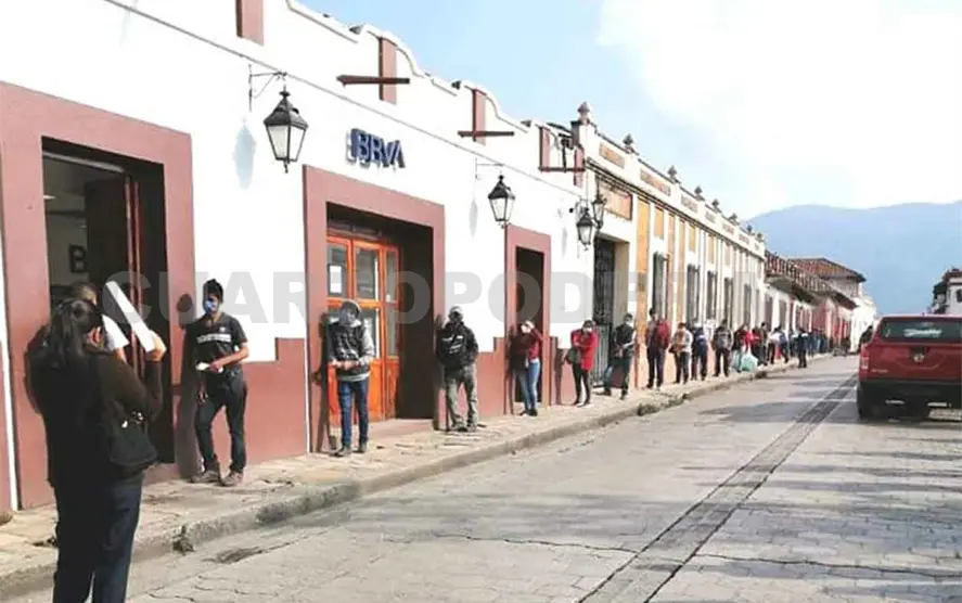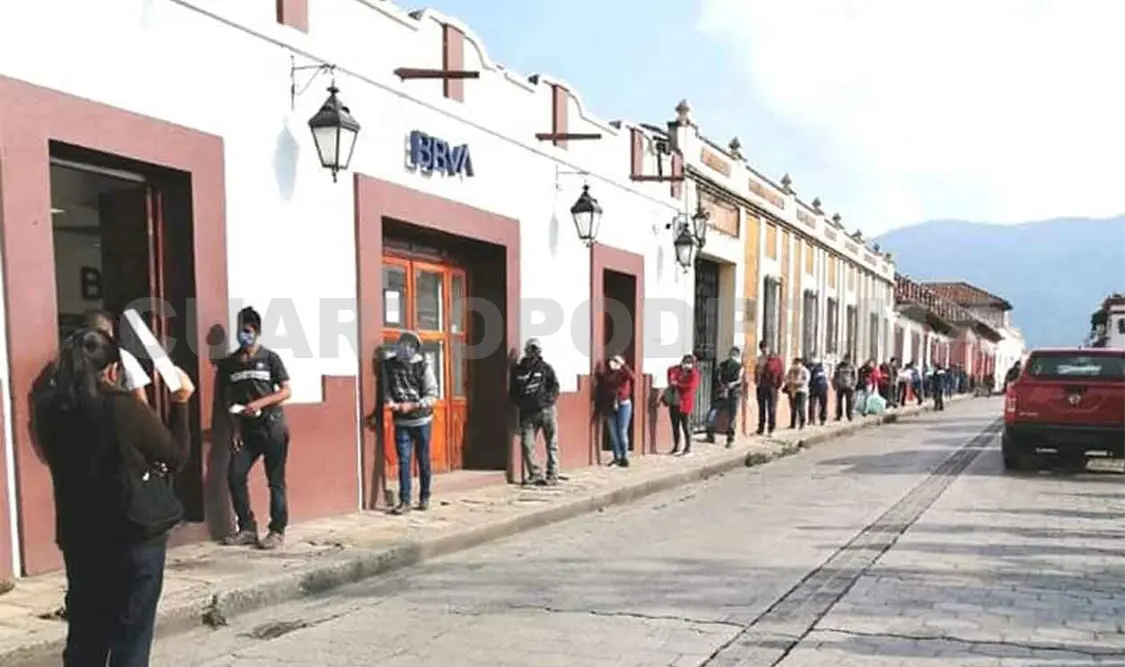 Ante el incremento de los casos de Covid-19, elementos de Seguridad y Protección Civil intensificaron los operativos para que se cumpla con las medidas de la sana distancia en diversas zonas de San Cristóbal de Las Casas, principalmente en las sucursales bancarias.