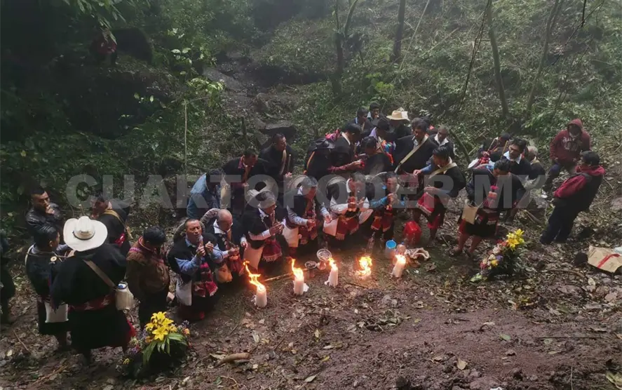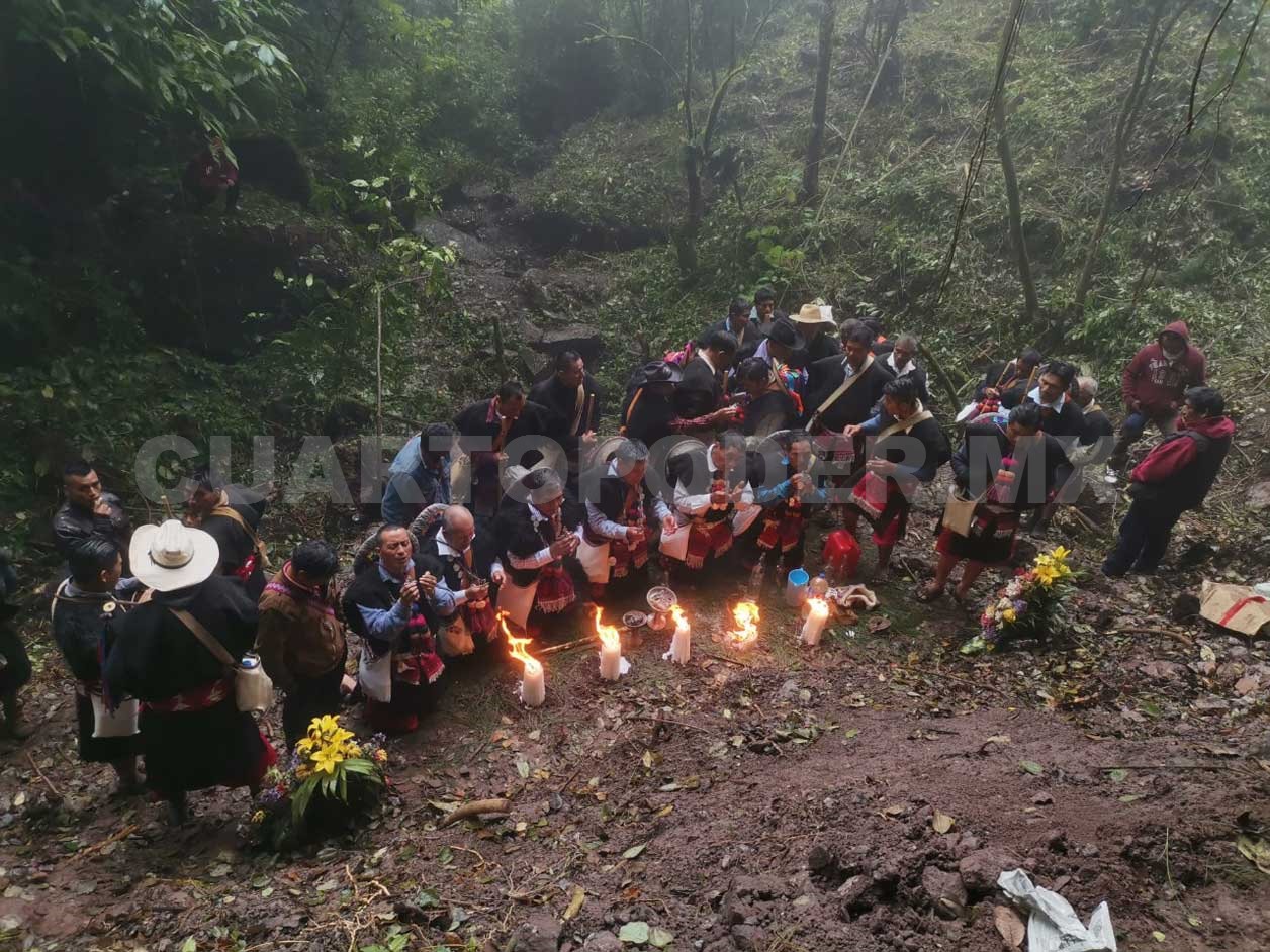 El pasado 8 de diciembre se reunieron en las montañas alrededor de 70 indígenas tzeltales para rendir tributo a los dioses Ch’ul Anjel Tsima y Jam Sti’ Anjel, los guardianes del Bankilal Ajaw y del Ijts’inal Ajaw (Las Montañas de Matzam).