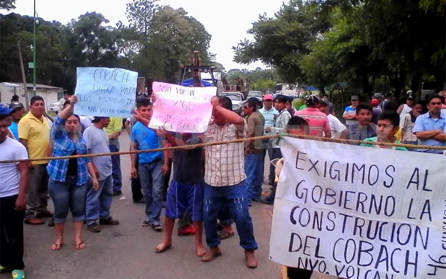 Más de 200 habitantes de la comunidad zoque del Nuevo Volcán Chichonal, del municipio de Juárez, bloquearon desde el mediodía de ayer la carretera a Reforma, en demanda de atención de las autoridades estatales para construcción de un Colegio de Bachilleres en su comunidad.