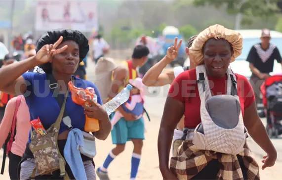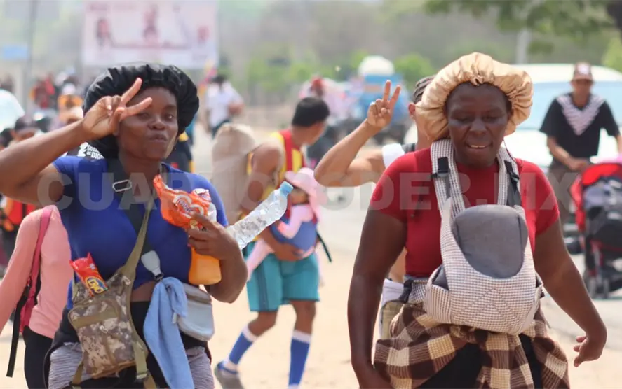 Con una temperatura de 34 grados centígrados y sensación térmica de 36, un contingente de poco más de 400 migrantes recorrió el tramo carretero Jiquipilas-Cintalapa desde las primeras horas de este jueves.