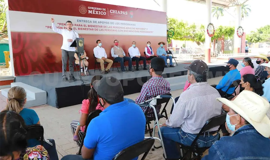 En el arranque del operativo de “Entrega de Apoyos de los Programas Pensión para el Bienestar de Personas Adultas Mayores y Pensión para el Bienestar de Personas con Discapacidad Permanente”, en el municipio de Acala, el gobernador Rutilio Escandón Cadenas sostuvo que estas iniciativas con alto sentido humano, impulsadas por el presidente Andrés Manuel López Obrador, garantizan una mejor calidad de vida a la población que durante muchos años estuvo en el olvido.