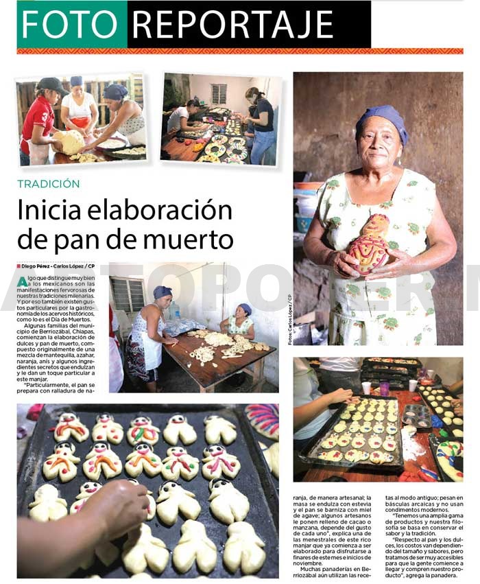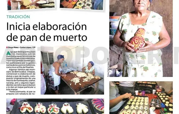 Algunas familias del municipio de Berriozábal, Chiapas, comienzan la elaboración de dulces y pan de muerto, compuesto originalmente de una mezcla de mantequilla, azahar, naranja, anís y algunos ingredientes secretos que endulzan y le dan un toque particular a este manjar.