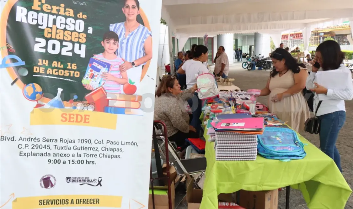 Este jueves, en la explanada del anexo de la Torre Chiapas, inició la “Feria Regreso a Clases 2024”, organizada por la Cámara Nacional de Comercios Servicios y Turismo de Tuxtla (Canaco ServyTur), en la que se ofertan artículos, productos y servicios de papelería escolares para apoyar la economía familiar.