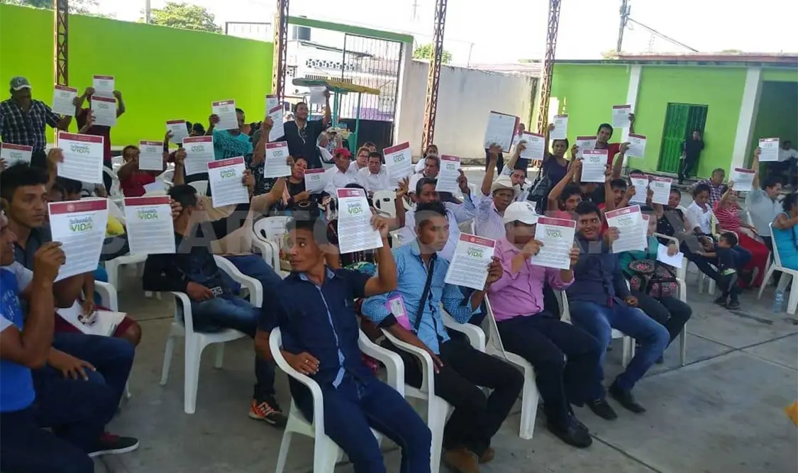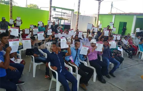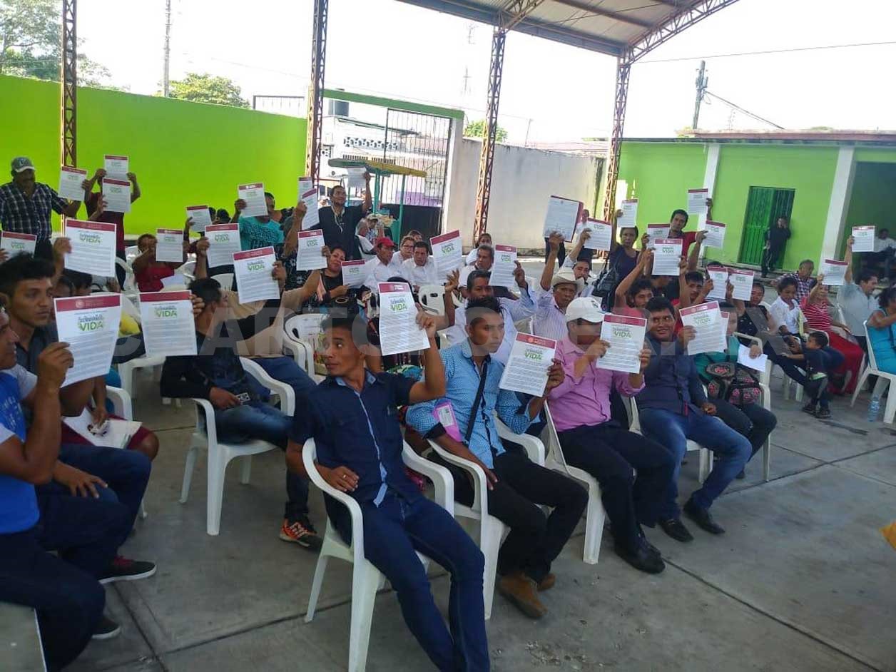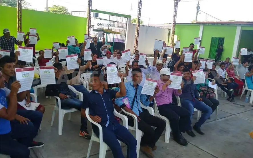 Fue en la casa ejidal de Huixtla en donde se realizó la primera entrega a beneficiarios validados de los municipios de Acapetahua, Villa Comaltitlán, Amatenango de la Frontera y Bellavista.