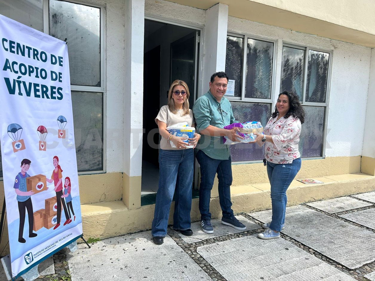 El Instituto Mexicano del Seguro Social (IMSS) en Chiapas instaló centros de acopio con el propósito de reunir víveres y artículos de primera necesidad en apoyo a las familias afectadas por las lluvias en los estados de Hidalgo, Puebla, Querétaro, San Luis Potosí y Veracruz.