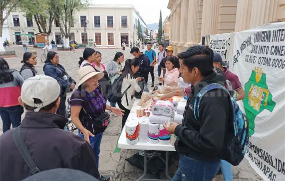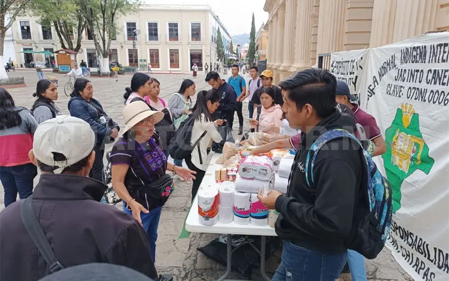 Estudiantes de la Escuela Normal Intercultural Jacinto Canek instalaron este miércoles dos centros de acopio en San Cristóbal de Las Casas, en apoyo a los desplazados del municipio de Tila