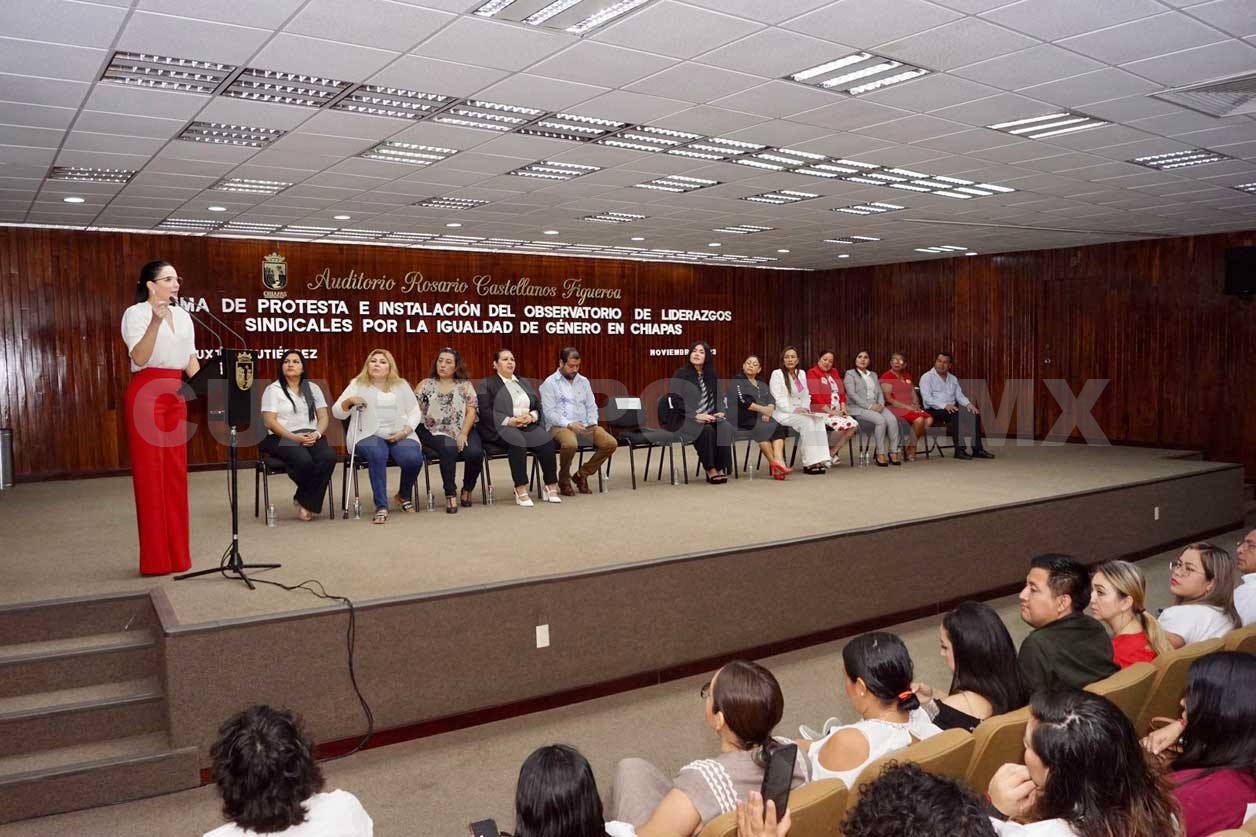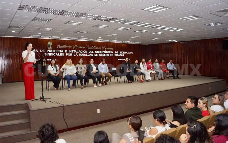 En el Auditorio “Rosario Castellanos” del Palacio de Gobierno, en Tuxtla Gutiérrez, se instaló el Observatorio de Liderazgos Sindicales por la Igualdad de Género en Chiapas, primero en su tipo en el país y que tiene como objetivo tanto analizar como visibilizar los avances de participación de las mujeres, fortalecer sus liderazgos, además de implementar políticas y protocolos que permitan garantizar la igualdad y no discriminación.